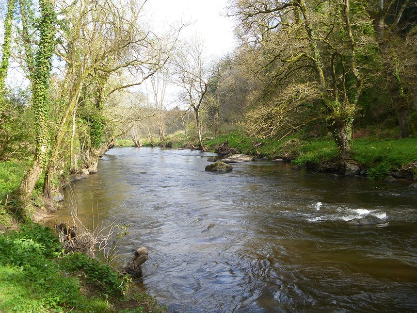 Un joli poste pour le saumon en début de saison, ici sur le Léguer. Un plat profond, pas trop rapide jonché de gros blocs