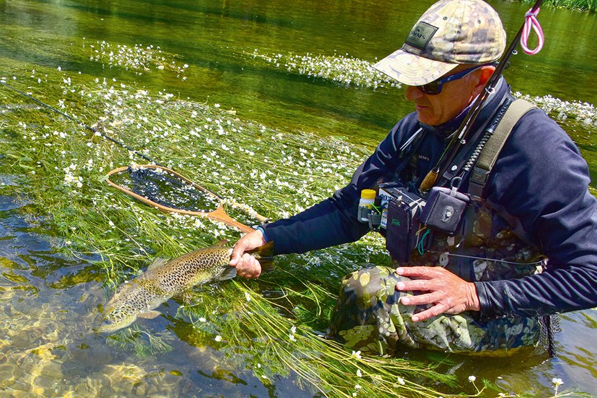 Que peut-on me souhaiter pour l’avenir ? Eh bien, que je puisse continuer la pêche à la truite qui me donne tant de satisfaction. Je pense malheureusement que beaucoup de rivières auront des problèmes dans le futur à cause de ce foutu réchauffement climatique ! On voit déjà que les eaux des rivières se réchauffent et les salmonidés souffrent. Donc, je ne demande rien de plus qu’une pêche durable qui ne peut être faite que « Sin Muerte », « sans tuer » les poissons, et que tous comprennent que les truites sont nos partenaires dans ce sport et qu’il faut donc les préserver et surtout ne pas les tuer !