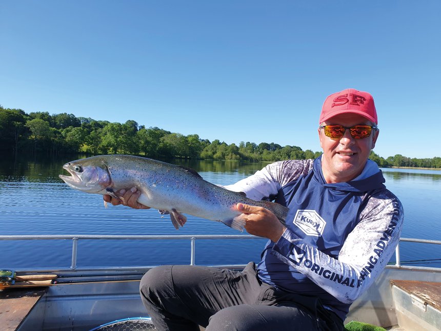 Afin de vivre confortablement, les poissons cherchent systématiquement une zone où la température et le taux d’oxygène dissous leur convient le mieux. Si donc, la seule couche superficielle compile les facteurs idéaux à l’activité des poissons, il ne sera pas utile de descendre en dessous ! D’une part, il est extrêmement rare qu’un salmonidé baisse la tête pour aller chercher une proie en dessous de lui (d’où la position de ses yeux tournés vers le haut de la tête), d’autre part, cette action le ferait sortir de sa zone de confort, ce qui le mettrait en danger. Il faudra donc, pour être raccord avec les caractéristiques du moment, cibler les zones de confort de poissons, c’est-à-dire, comme nous avons vu précédemment, celles dont les caractéristiques de températures sont les plus adéquates à l’activité alimentaire des truites et donc… la surface ou sa proximité immédiate ! Si les caractéristiques physico-chimiques de l’eau du réservoir sont temporairement incompatibles avec la vie des salmonidés, les truites chercheront une zone se rapprochant de ce qui est tolérable pour leur survie et se mettront sur « off » le temps que les conditions s’améliorent. Dans ce cas, elles seront bien souvent collées à la surface, ou littéralement posées sur le fond.