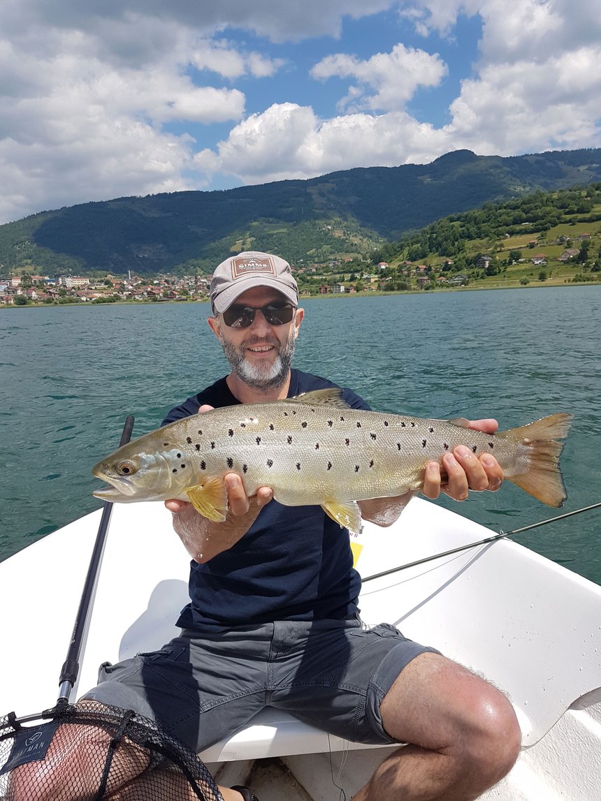 Stéphane nous présente une superbe truite de lac avec une robe incroyable, prise lors de l’entraînement du championnat d’Europe au Monténégro, en 2019