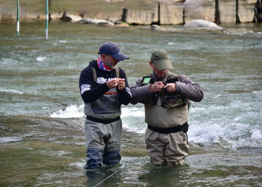 Stéphane est un excellent pêcheur en rivière et il maîtrise parfaitement les dérives en nymphe au fil, ce qu’il est en train de montrer lors d’un stage technique de l’équipe de France.