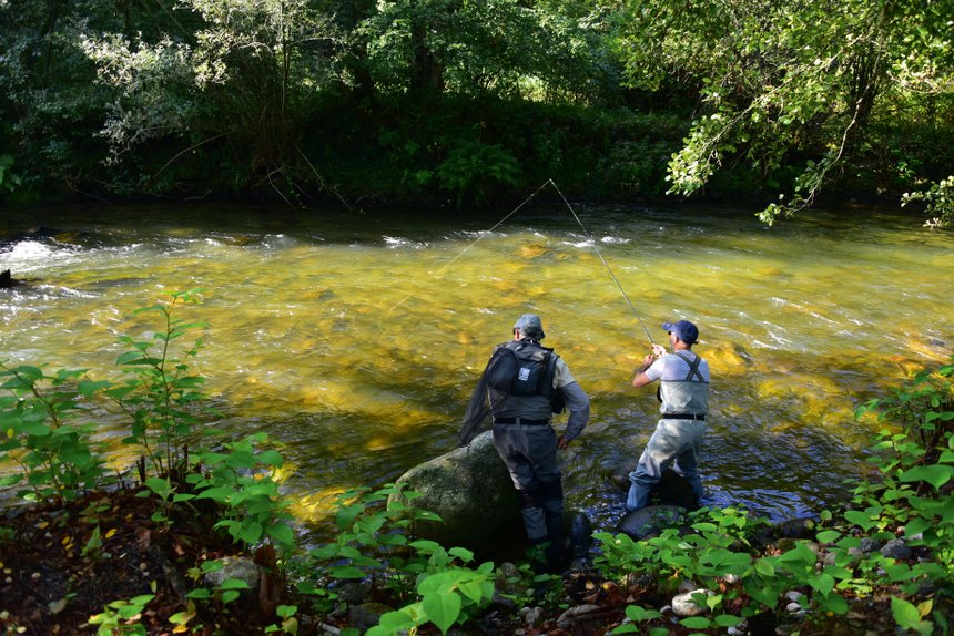 Stéphane aime pêcher les rivières des Pyrénées pour y traquer les belles farios sauvages avec son compère Laurent Sentenac.