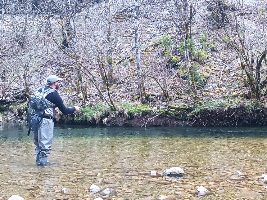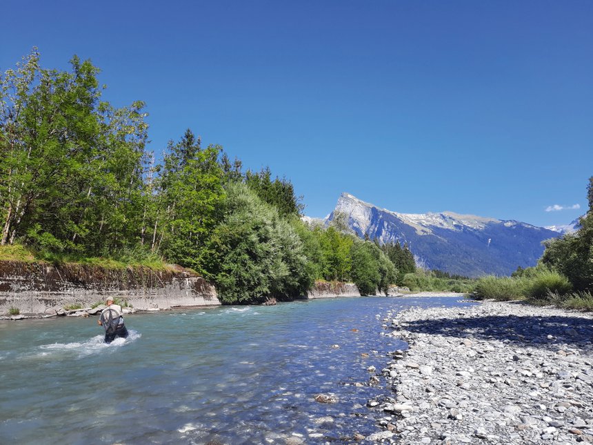 Le tandem est une excellente pêche de prospection, notamment quand les poissons sont bien actifs. De ce fait, plus la dérive est longue, plus le tandem est efficace. L’idéal sera de pêcher des dérives régulières, de longueurs supérieures à un mètre et de profondeurs allant de 20 à 70 cm. Attention à bien se positionner ! Cette technique, comme pour la pêche à deux nymphes, impose de poser les deux mouches exactement dans la même veine. La nymphe doit tomber plein amont de la sèche, pointe généralement tendue. Sans ça, les deux mouches ne seront pas parfaitement en contact et le nombre de touches ratées, ou même non détectées sur la nymphe, sera très important ! La pêche en tandem est particulièrement conseillée sur des faciès réguliers, avec des profondeurs régulières et des vitesses de dérive pas trop élevées.
