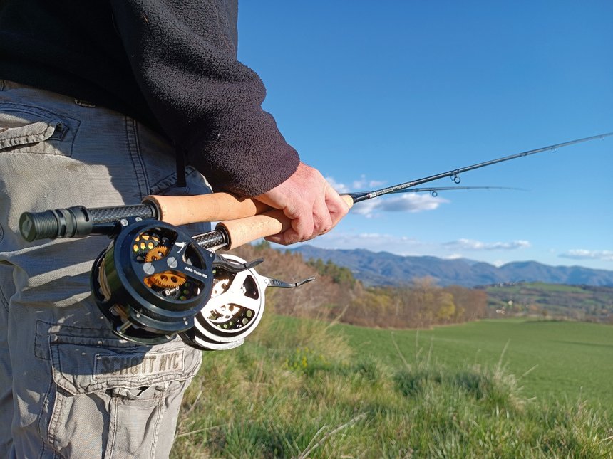 Pêche en tandem au fil Une canne 10’6 soie de 2/3 : la longueur permettra un bon contrôle des dérives et la puissance sera idéale pour envoyer des poids très légers. Un moulinet semi-automatique, de type Yoto Nymph : le semi-automatique étant incontournable de la pêche au fil. Attention à ce qu’il équilibre bien votre ensemble. Une soie type Euronymph en 0,55 sera idéale pour contrôler parfaitement les dérives. Le bas de ligne : on sera sur une construction typique de la pêche au fil, avec ou sans repère visuel.