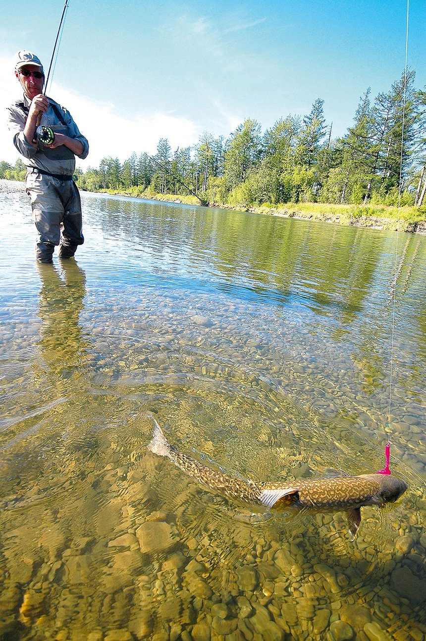 Je me rappelle un séjour sur la Yama river en Sibérie où j’ai eu la chance de capturer plusieurs kundzas anadromes de bonne taille. La plupart de ces poissons étaient postés dans des bras secondaires de la rivière parfois même proches de gros embâcles de bois. Cela prouve encore une fois leur comportement carnassier et le fait qu’ils se nourrissent en rivière à la différence des saumons. Ils sont opportunistes et ne laissent pas passer une belle bouchée. C’est pourquoi les grandes mouches de plus d’une douzaine de centimètres sont les plus efficaces. Au Kamtchatka, j’en ai pris également de plus modestes sur ce qui semblait être des zones de frayères pour les saumons. Les kundzas étaient juste derrière comme le font les grosses truites arcs-en-ciel qui se gavent des œufs libérés par les femelles. Je pense que nos léopards de rivière avaient ici les mêmes intentions ! Cependant, aucun de ces poissons ne dépassait la soixantaine de centimètres, les plus gros sujets semblant préférer les proies plus dodues ! Ce poisson me fascine je dois dire, sa beauté d’abord, ensuite le fait qu’il puisse atteindre plus d’un mètre de long et enfin son aire de répartition dans une des régions les plus sauvages et préservées au monde. Comme je l’ai évoqué ci-dessus, mon dernier séjour au Kamtchatka sur l’Icha River a été un échec dans la quête de ce léopard aquatique. Je pense déjà à une nouvelle expédition estivale pour croiser le fer avec cet incroyable poisson. Ce qui est certain c’est que ce sera au fin fond de la Russie, au pays des ours dans un environnement préservé qui nous ramène à nos origines et nous rapproche de notre mère à tous, la Nature avec un grand N !