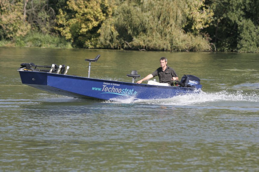 Enfin le choix d’un bateau prend également en compte les aménagements. Je ne parle pas forcément des rangements, viviers ou sièges, certes pratiques mais dispensables. Je parle de l’architecture interne: pontage et console. Le pontage est utile pour surélever le pêcheur et crée du volume pour les rangements. Mais un pontage intégral étant peu envisageable ni même souhaitable, on a systématiquement au moins un espace non ponté, au centre ou à l’arrière. Donc, si on veut par exemple bien étaler un beau silure de 2m ou plus, le pontage va poser des problèmes. Idem pour la console de pilotage, pratique et moins fatigante que la barre franche, répartissant mieux les charges puisque l’on est assis au milieu, mais qui mange pas mal de place. C’est sans aucun doute très bien sur un gros bateau, mais en dessous de 4,50 m, ça sacrifie beaucoup d’espace. Pour en finir avec cette série, reste à aborder le choix du matériau et, bien sûr, les tarifs. Ce que nous verrons bien sûr dès le mois prochain.