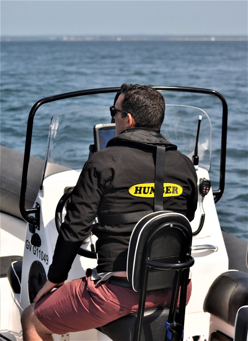 Le Humber 6.30 est motorisé avec un DF175 APX Suzuki. En navigation, le comportement de la carène s’avère vraiment dynamique, le passage en mer est à la fois vif et progressif, ce qui apporte une meilleure stabilité sur l’ensemble du bateau. La direction hydraulique étant vraiment fluide et réactive, la conduite de l’Ocean Pro 6.30 devient très sportive et joueuse dès que l’on dépasse les 30 nœuds. Aussi, et afin d’optimiser davantage sa conduite, le bateau est équipé de commandes électriques, ce qui procure un vrai confort de pilotage, sans ressentir secousses au démarrage, mais plutôt une puissance d’accélération qui est assez bluffante. À 3 000 tours, le semi-rigide atteint une vitesse de 18 nœuds; à 4500 tours, il enregistre une vitesse de 33 nœuds; et à 6000 tours, il fuse sur l’eau à une vitesse de 45 nœuds. C’est vous dire à quel point la carène est dynamique. Côté confort de navigation, la longueur de coque favorise un passage en douceur, elle reste stable et assure le franchissement des vagues sans ressentir le moindre choc. Cela passe aussi par le bon réglage du trim, selon la vitesse à laquelle vous abordez les vagues. Il est important de varier la hauteur du moteur, afin de conserver la bonne assise de la carène et une sécurité optimale à bord. Pour parfaire davantage son bon passage en mer, la coque dispose d’un V profond prononcé qui écrase l’eau, conservant ainsi une navigation agile et surtout confortable, ce qui est nettement appréciable par mer formée.
