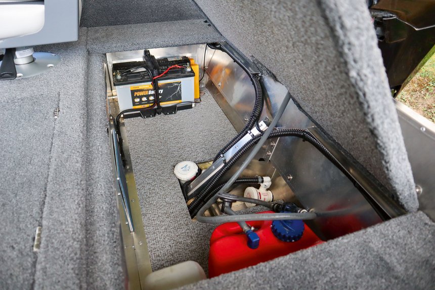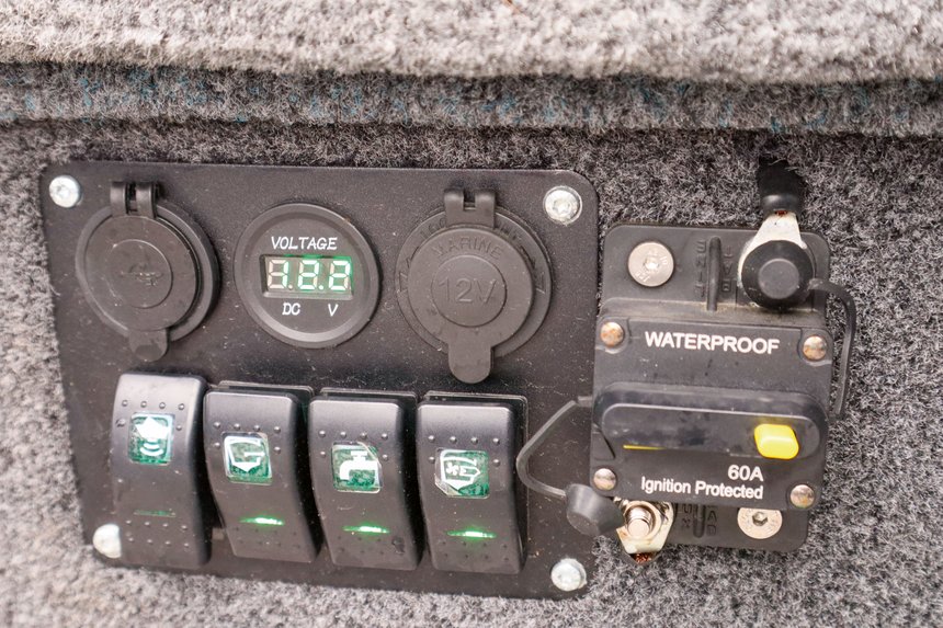 Si le guindeau, ou lève-ancre, n’est quasiment plus utilisé en raison de l’ancrage virtuel des moteurs électriques avant, les feux de navigation restent obligatoires pour se déplacer de nuit sur le domaine public là où c’est autorisé. Si vous pêchez en fleuve ou en plan d’eau où la navigation est autorisée de nuit, il vous faudra prévoir ces équipements et leur branchement électrique. L’éclairage des coffres, grâce à la technologie des bandes de leds étanches, nous permet de préparer sereinement notre matériel au bord de l’eau avant le lever du soleil. On ne risque ainsi plus de se tromper de coffre ou de chercher partout son gilet de sauvetage. Ces leds fonctionnant sur du 12 V et étant prévues pour un usage nautisme ne sont pas tant un gadget que ça. Lorsqu’on y a goûté, difficile de s’en passer.
