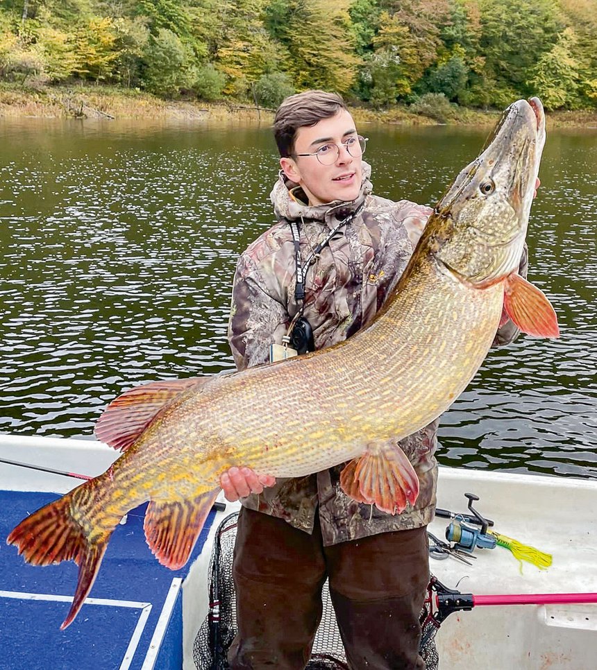 Le jeudi 2 novembre, après avoir écopé les deux bateaux, sous des trombes d’eau, personne ne perd espoir. « Il était 16 h 25, on ne s’y attendait pas, mais j’ai senti la touche typique et les dents frotter sur le bas de ligne », rapporte Mathieu. Le jeune étudiant (un BTS gestion et maîtrise de l’eau à Nevers) avait choisi de retourner sur une zone où, avec son Side-Imaging, il avait repéré quelques gros échos dans la semaine et avait eu quelques touches. À 18 ans, Mathieu Girard comptait déjà trois métrés à son palmarès et a déjà pêché beaucoup de lacs en France. Une expérience qui a payé sur le barrage de l’Aigle ! « On avait une petite épuisette, mais grâce à la dextérité de Kevin, c’est rentré, sourit Mathieu. Tout s’est joué au mental. J’ai fait de grands signes à mon père qui nous a rejoints. C’était l’euphorie sur les bateaux. Le plus beau, c’est qu’on a pu partager ça tous ensemble. Les locaux n’avaient jamais vu ça, ils ont halluciné. On a croisé un guide de pêche à la mise à l’eau, il n’en revenait pas. »