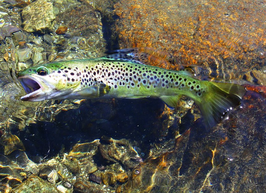 Les salmonidés misent sur ce que l’on appelle le camouflage par homochromie, un mode de dissimulation très répandu chez les poissons. Il concerne principalement la couleur de l’animal, en lui permettant de s’harmoniser et se confondre parfaitement avec l’environnement qu’il occupe. Dans le milieu aquatique, la couleur est un caractère qui, au sein d’une même espèce, peut évoluer assez rapidement dans le temps, contrairement à d’autres qui nécessitent d’avoir plusieurs millions d’années de mutation. Mais l’homochromie n’est pas un unique dispositif de camouflage : le simple fait qu’une couleur fixe soit attribuée à un individu ne suffit pas face à la multitude de faciès imposés par les différents milieux aquatiques, qui oblige les truites à avoir une livrée qui évolue et s’adapte à leur guise. Elles n’ont en fait rien à envier au fameux caméléon puisqu’elles disposent de la même arme mimétique : les chromatophores, qui offrent à la truite une capacité à changer de couleur afin de se fondre au mieux dans l’habitat qu’elles fréquentent à l’instant T.