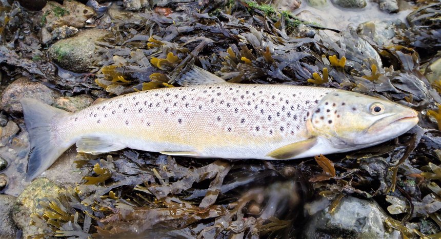 ■ quelques points possibles sur la queue et l’adipeuse de la truite de mer contrairement au saumon où l’on n’en voit jamais;