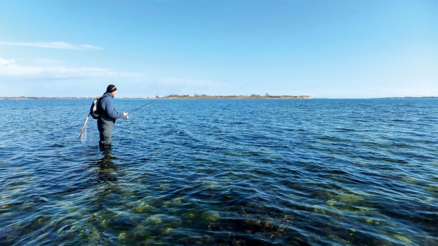 Les eaux saumâtres de la Baltique ouest qui bordent l’île de Fionie sont peu profondes. Les hauteurs d’eau de 15 à 20 m sont les plus grandes profondeurs qu’on puisse espérer y trouver. Néanmoins, elles excédent rarement quelques mètres, à tel point qu’il n’est pas rare de pouvoir aller d’une île à une autre à pied simplement équipé de waders, à la simple condition de connaître le gué marin qui chemine sur plusieurs centaines de mètres entre les deux terres. Ces hauts-fonds baignés d’eau limpide reçoivent beaucoup de lumière et sont donc fortement colonisés par de nombreuses algues et autres herbiers. Dans ces massifs végétaux se multiplient d’innombrables crevettes et énormément de poissons fourrage5 . C’est cette richesse des eaux de la Baltique qui attire à Fionie et, plus globalement, au Danemark les truites de mer parmi les plus grosses du monde. Ainsi, le record du Danemark est établi depuis 1991 à 16,3 kg (pour 1,08 m) dans le Nord-Ouest du Jutland, la partie continentale du pays. Comme la plupart des poissons records, celui-ci fut capturé en rivière (la Karup Å). Pourtant, au Danemark, la très grande majorité des truites sont prises en mer. Leur poids moyen s’établit entre 1 et 2 kg et les prises de 4 à 5 kg ne sont pas rares. Si le record de la zone de Fionie ne culmine « qu’à » 9,5 kg, c’est pourtant bien dans cette région que se concentrent la plus grande quantité de truites et le plus grand nombre de spots de pêche. Ceci s’explique par la très grande diversité des plages de Fionie : tantôt couvertes de galets, tantôt sableuses ou sablo-caillouteuses, tantôt vierges de végétation ou, au contraire, plantées de fucus, sargasses et autres zostères (Zostera marina). Les truites de mer adorent littéralement toutes ces plages. Elles sont très mobiles et se déplacent sans cesse de l’une à l’autre dans une quête permanente de leur pitance. Cette variété qui caractérise le littoral des côtes très découpées de Fionie fera également le bonheur du pêcheur sportif, ravi de pouvoir exercer sa passion au sein de tels décors.