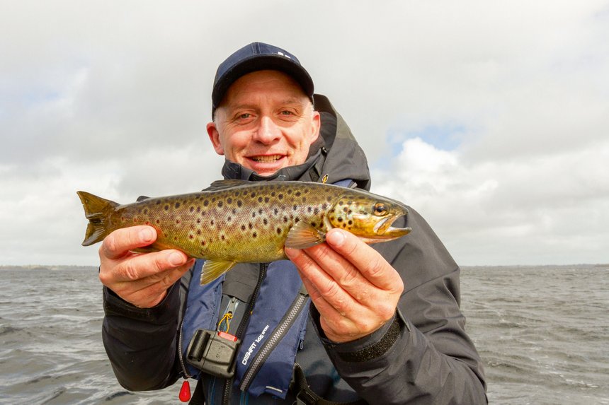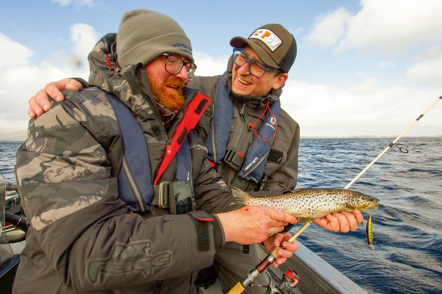 La population salmonicole de ces lacs est constituée de truites fario de souche atlantique, voire irlandaise ! Il y a plusieurs sous espèces suivant les lacs, brown trout, gillaroo, Sonaghan aux robes variées. L’autre salmonidé qui suscite de nombreuses passions et la monstrueuse truite férox, Salmo Trutta Ferox en latin. C’est une espèce dont l’espérance de vie est plus longue. C’était un poisson migrateur qui allait en mer et a été piégé dans les grands lacs irlandais il y a 10 000 ans à la suite de changements climatiques. Il vit dans les profondeurs et remonte chasser un peu plus en surface à certaines périodes de l’année. La férox se pêche majoritairement à la traîne avec de gros leurres. J.P. utilise notamment des butch de Savage Gear mais son record a été capturé avec un Salmo Hornet de 9 cm.
