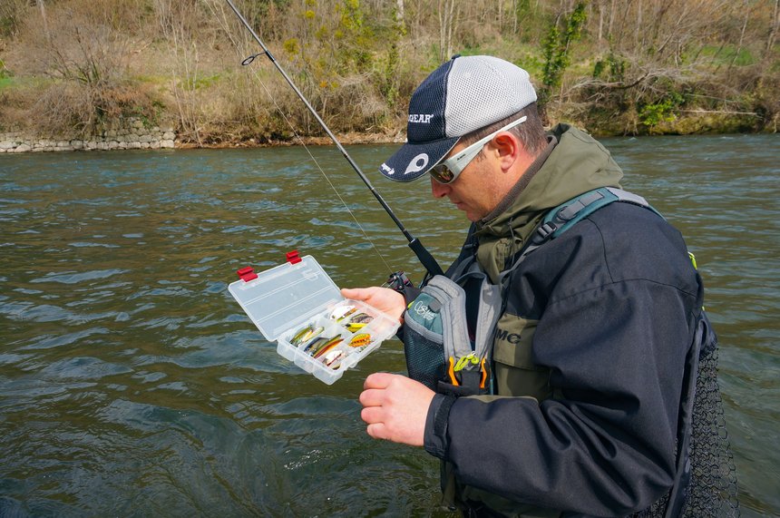 Nous pouvons également discuter avec d’autres pêcheurs rencontrés, de manière à confronter nos résultats et impressions. S’ils ont eu du succès, c’est que nous sommes dans l’erreur et qu’il faut changer notre façon de pêcher. Dans le cas contraire, et selon leur approche et leur niveau technique apparent, leurs résultats peuvent confirmer l’inactivité des truites. La bonne réponse doit alors être différente. Mais dans les deux cas, elle revient à changer quelque chose. En effet, la réaction face à un mauvais début consiste le plus souvent non pas à insister en espérant que ça s’arrange, mais à modifier des paramètres pour trouver une solution. Cela joue sur la façon de prospecter, en ciblant des postes différents ou en présentant autrement, plus lentement, plus près du fond ou plus décollé, plus naturellement ou au contraire de manière agressive pour faire jouer d’autres stimuli. Ces changements peuvent aussi concerner ce que nous proposons aux truites : le type de leurre (taille, densité, action, couleur), l’appât (type et taille) ou le montage utilisé (plus lourd ou plus léger, plus concentré ou étalé pour une plombée toc par exemple). Vous pouvez passer d’une technique basée sur un comportement alimentaire à une autre basée sur l’agressivité, si vous les maîtrisez et disposez du matériel. Évidemment, on peut aussi changer de secteur voire carrément de cours d’eau.