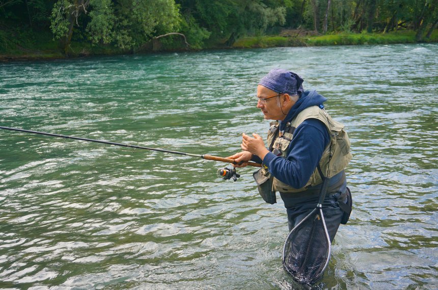 Privilégiez la pêche en montant dans les secteurs où on se tient à courte ou moyenne distance. C’est la règle dans les petites et moyennes rivières, ou bien dans certains secteurs de grande rivière, aux coups marqués et pas trop éloignés. Pour les pêches à distance et la prospection des longues veines d’eau, il est préférable de pêcher en descendant le courant. Pour favoriser une bonne présentation des nymphes avec un montage sans flotteur, mieux vaut une bannière pas trop verticale et une canne en avance sur la ligne, c’est-à-dire qui précède la ligne pendant la dérive, contrairement au toc avec appâts. Il est généralement préférable de ne pas « porter » le montage mais simplement de le soutenir légèrement et d’avoir une bannière peu tendue pour éviter de tracter et de faire décoller la nymphe du fond. L’idéal est que cette imitation ait un comportement quasi aussi naturel que les appâts vivants que vous utilisez le reste du temps ! Finalement, cette technique n’est pas si éloignée !
