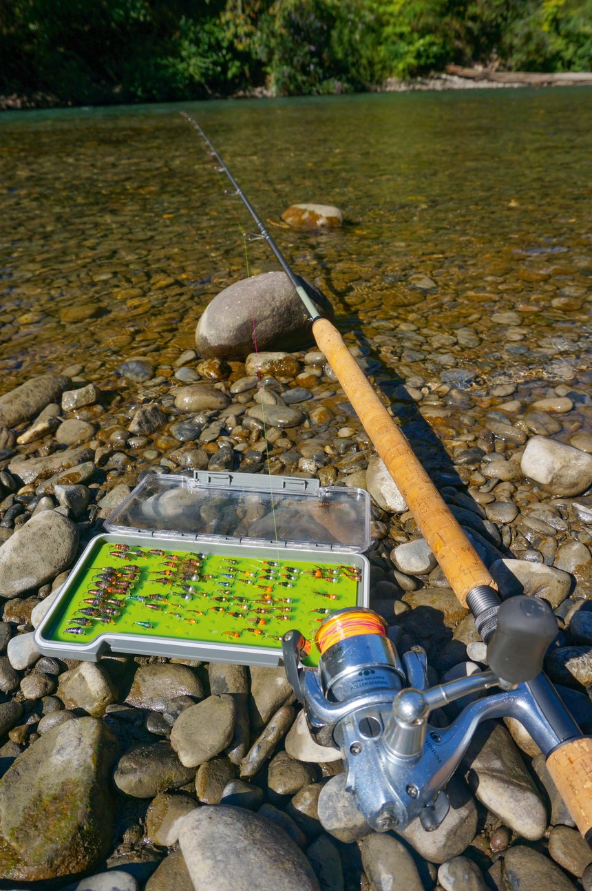 Cette partie débute par le montage, qui doit être adapté au profil du secteur pêché. Le plus simple c’est un corps de ligne fluo bien visible suivi d’un bas de ligne transparent au bout duquel est nouée une nymphe. Cette dernière est lestée, le plus souvent par une bille métallique intégrée lors de sa réalisation et aucune plombée additionnelle n’est ajoutée. Le choix de modèle constitue évidemment un point clé, mais plus en matière de poids et de volume que de forme ou de couleur. Une seconde artificielle, généralement différente de la première, peut être ajoutée par le biais d’une courte potence, nouée 30 à 60 cm au-dessus de celle de pointe. Ce montage convient bien aux parcours courants et aux veines porteuses des parcours typés « toc ». Dans le cas de veines d’eau moins puissantes ou de longs courants laminaires, on pourra avoir recours à un montage intégrant un flotteur pour porter la nymphe et favoriser les longues dérives, surtout si vous devez pêcher à distance. Vous pourrez ajouter un plomb additionnel, proportionné à la portance du flotteur, suivi d’un bas de ligne de 40 à 60 cm au bout duquel est fixée la nymphe lestée. Cette technique peut se pratiquer aussi bien en remontant qu’en descendant le courant.