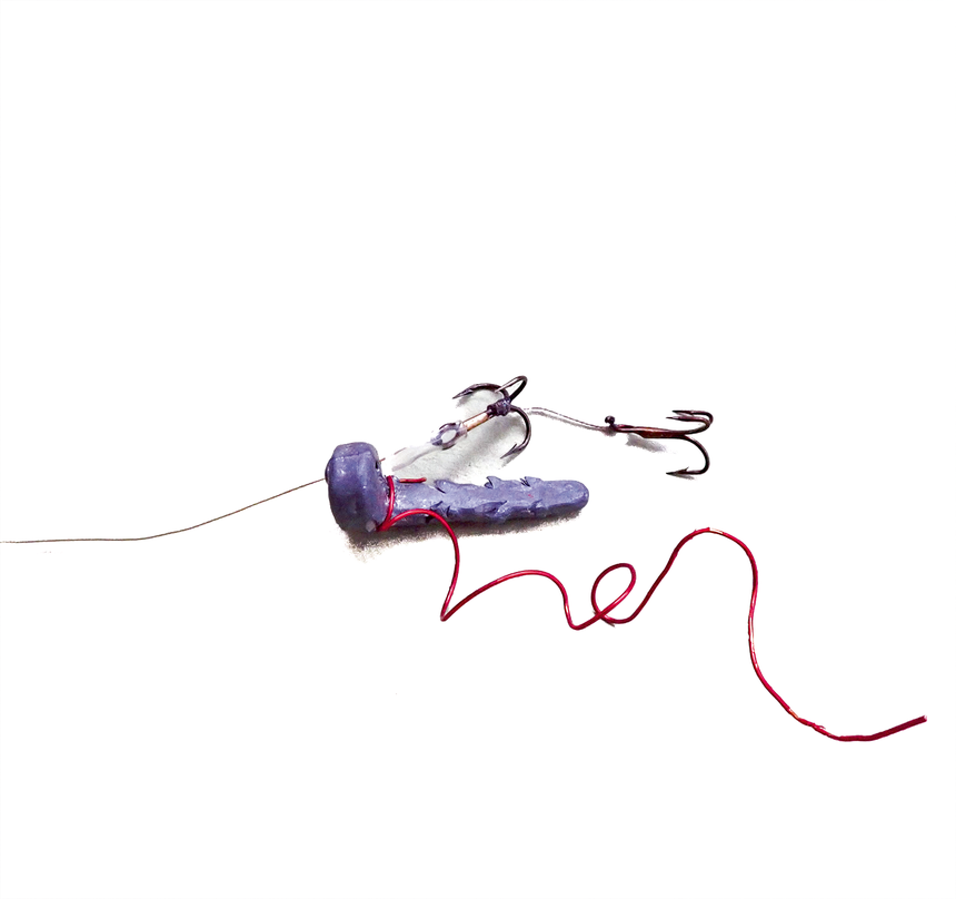 Le clou ou monture Ariel est ultra-connu avec son pal interne avec une tête légèrement arrondie mais non décentrée comportant deux trous latéraux où passent les empiles réglables afin de bien positionner les hameçons. À l’avant, un émerillon préserve du vrillage. Massive, elle permet de pêcher bien creux et de réaliser de bonnes animations même à distance.