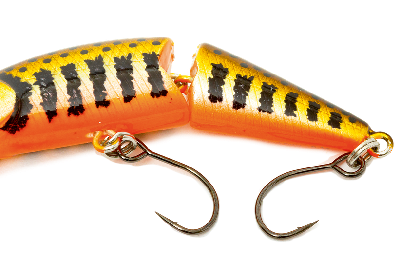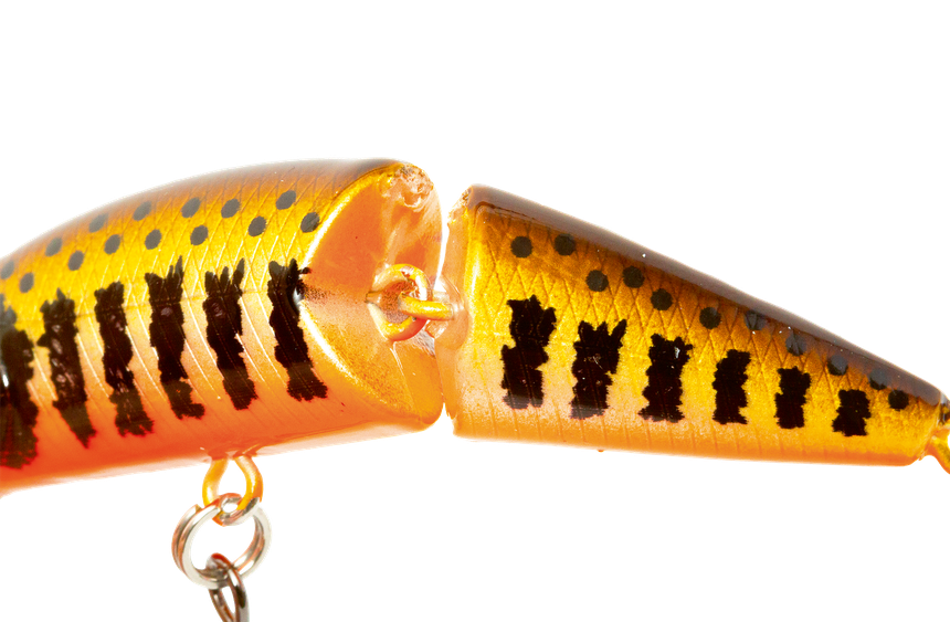 D’autres marques proposent ce type de poisson nageur articulé, c’est une valeur sûre. La nage et les vibrations sont vraiment différentes et complètent bien la boîte du pêcheur. Le gros atout, c’est une mise en action très rapide ! Au premier tour de manivelle, le leurre entame une nage sinusoïdale imitant un poisson en fuite. Sakura a inversé l’articulation en creusant les flancs du minnow offrant un débattement horizontal plus grand. La partie arrière bouge beaucoup !