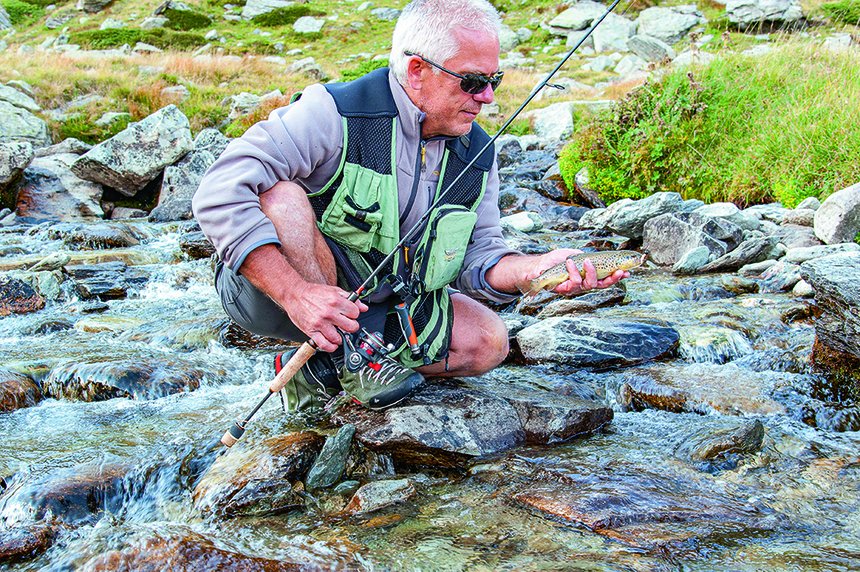 Les chartes des parcs sont chargées de « prévenir toute atteinte aux espèces animales et végétales et aux habitats ». La pêche y est donc autorisée, moyennant des restrictions pour éviter les impacts sur les milieux. Même si les règles sont spécifiques à chaque parc, voire à chaque contexte, on retrouve souvent des restrictions concernant les appâts naturels. Dans la Vanoise, la pêche à la sauterelle est prohibée, puisque la cueillette n’est pas autorisée. La pêche au vairon est interdite dans les lacs et torrents de Vanoise et dans les lacs du Mercantour. Pour les lacs des Écrins et des Pyrénées, il doit être pêché sur place. Tout cela pour éviter son introduction, néfaste aux écosystèmes. Le no-kill n’est, en revanche, pas retenu dans l’immense majorité des cas. C’est logique puisque la pratique halieutique dans ces espaces était originellement associée au prélèvement.