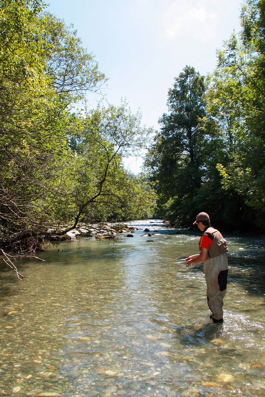 Si on peut, on aura intérêt à rechercher les secteurs d’altitude, rivières de montagne ou torrents, où les débits sont encore souvent conséquents et l’eau pas trop chaude. Les résurgences, dont la température est plus régulée, sont également une possibilité intéressante, tout comme les avals de grands barrages où l’eau relarguée est souvent fraîche. Sinon, on fait avec ce qu’on a sous la main et on sélectionne alors les secteurs les plus pentus et contraints de la rivière choisie, ceux dans lesquels l’eau est bien brassée et les courants prononcés. D’une manière générale, toutes les ruptures de pente et secteurs de rivière contraints sont favorables par eau basse en été. À l’inverse des secteurs larges, ouverts et plats. Enfin, par rapport à la luminosité, les tronçons ombragés sont évidemment les plus intéressants. Ils peuvent l’être grâce à la végétation qui borde le cours d’eau (attention alors à l’orientation par rapport au soleil, qui fait varier l’ombrage d’un secteur à l’autre), mais aussi grâce au relief. Les gros ruisseaux et petites rivières qui s’écoulent sous une voûte végétale sont souvent intéressants, du moins tant qu’ils sont encore suffisamment en eau. Mention spéciale aux portions de gorges, qui restent globalement fraîches et très ombragées en été.