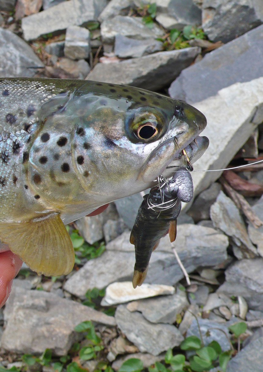 Enfin, n’oublions pas les leurres souples (petits shads, finesses), bien adaptés aux pêches près du fond. On peut les monter sur une simple tête plombée. Privilégiez les hameçons fins de fer très piquants, les têtes classiquement proposées pour la pêche des carnassiers étant souvent équipées d’un hameçon trop fort. On peut également les monter avec un petit triple (n°8 à 12 selon la taille du leurre) relié à une empile, c’est souvent plus efficace pour les salmonidés. Les leurres souples sont surtout intéressants pour pêcher creux dans des profondeurs moyennes, voire intermédiaires. Pour les postes vraiment profonds, ondulantes et jigs, bien plus denses, sont préférables.