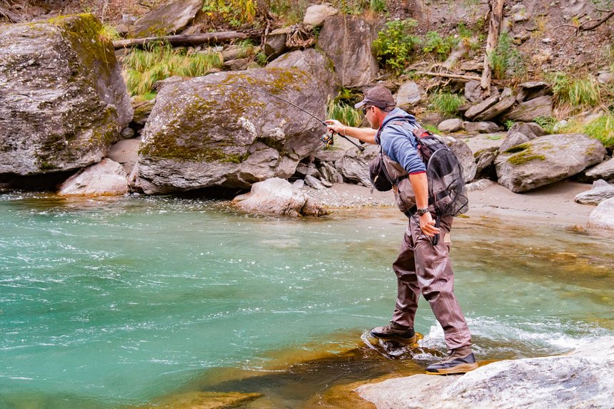 La tenue la plus à la mode et la plus répandue, quelle que soit la technique retenue (leurre, mouche, vairon ou toc), associe aujourd’hui des waders respirants à une paire de chaussures de wading ou de canyoning. Cette option implique toutefois un investissement important (250 € au minimum), plus onéreux qu’un ensemble canne/moulinet correct (comme on l’a vu le mois dernier), et non durable pour les waders respirants particulièrement fragiles. Des alternatives sont donc possibles d’autant plus que le pêcheur aux leurres, avec sa capacité à lancer loin, a un peu moins besoin de rentrer dans l’eau que son confrère pêchant en nymphe par exemple. Le choix d’une paire de cuissardes ou de waders (respirants ou pas) avec paire de bottes intégrée est tout d’abord possible, cela réduit au moins par deux le coût de revient de la tenue et permet « d’investir » son argent ailleurs. Les marques Caperlan et Garbolino notamment proposent ce type de waders, par exemple, à des prix attractifs pour quelqu’un qui veut débuter. La seconde option consiste à pêcher sans vraiment rentrer dans l’eau et de s’habiller sans tenue spécifique. Cela peut paraître contre-intuitif à ceux qui aiment soigner leurs approches en se plaçant toujours de façon optimale, mais c’est parfaitement envisageable sur certains parcours : secteurs urbains ou périurbains, torrent subalpin, minuscule ruisseau de plaine, secteur où la pêche dans l’eau est interdite… Des pêcheurs de truite aux leurres très expérimentés comme Morgan Calu ou Olivier Meira par exemple, n’utilisent jamais de waders même en début de saison.