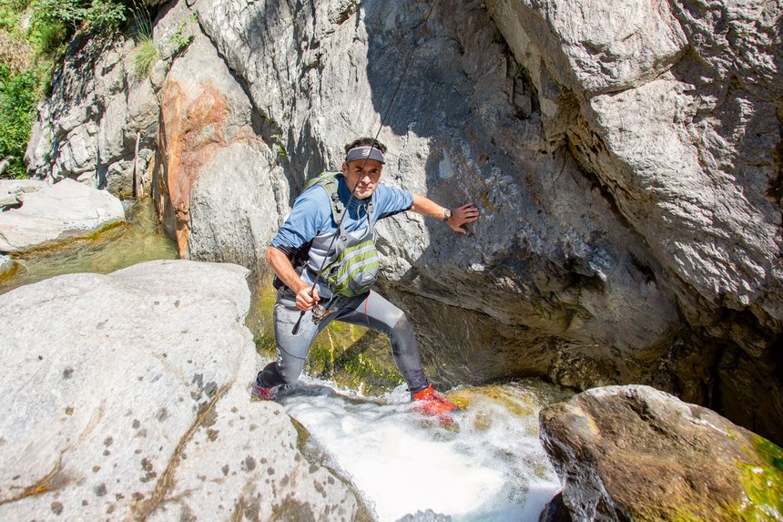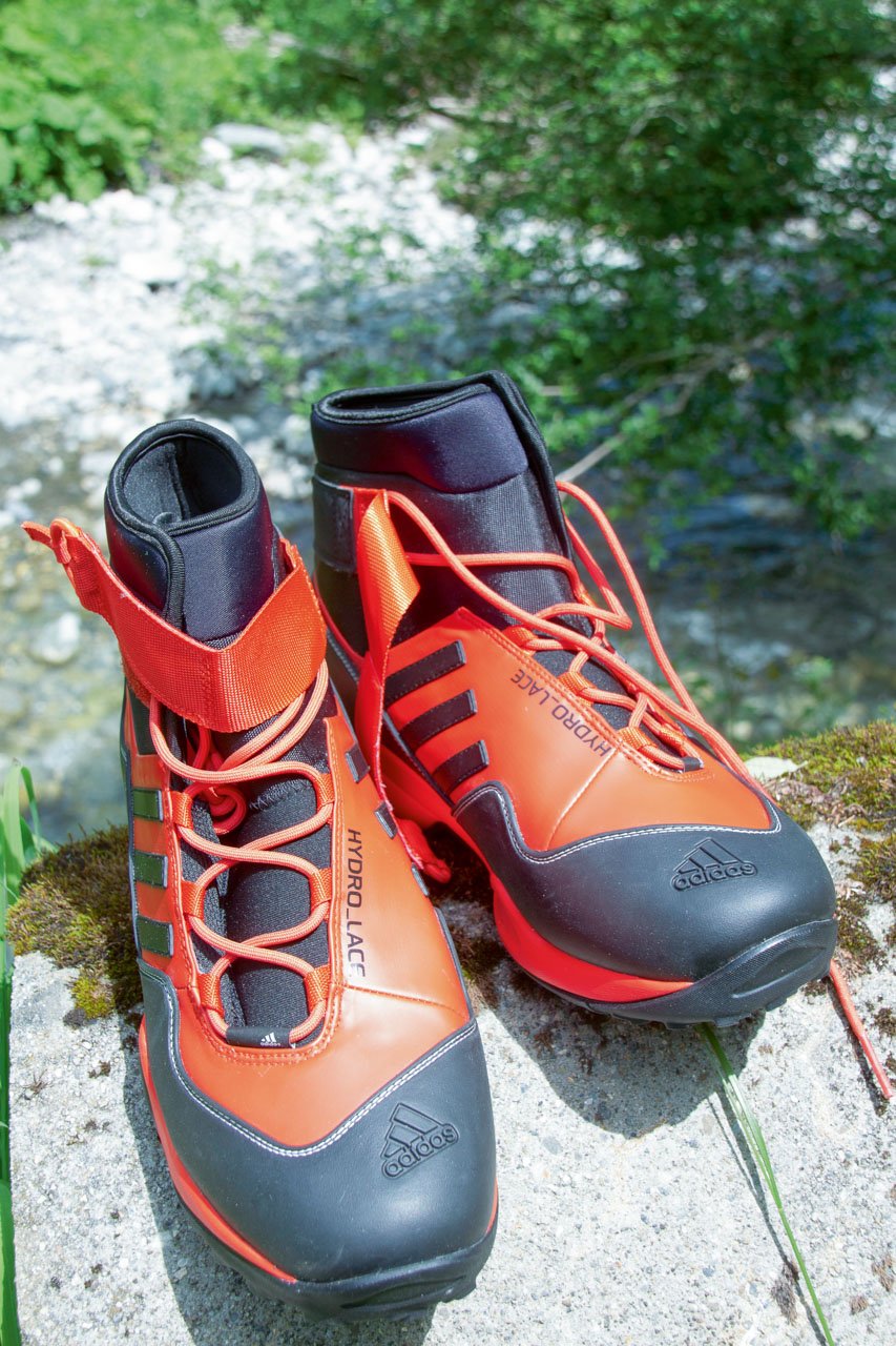 La dernière option consiste à n’investir que dans les chaussures qui sont pour moi le point clé de l’équipement. Les semelles techniques antidérapantes sont vraiment précieuses pour éviter les chutes et les glissades sur les rochers, surtout lorsque l’on couvre beaucoup de terrain comme les leurristes. J’ai une très nette préférence pour la gomme crantée (type Vibram ou Michelin par exemple) bien plus polyvalente que le feutre plus glissant lors des marches d’approche ou des contournements en dehors de la rivière. À titre personnel, je trouve que les chaussures de canyoning (Terex d’Adidas ou TX Canyon de La Sportiva par exemple) sont plus ergonomiques, légères et ont un meilleur rapport qualité-prix que la plupart des chaussures de wading. Elles seront associées, selon les saisons et la configuration des berges, à un short, un pantalon de sport aquatique (voir encadré) ou de randonnée. Le réchauffement climatique plaide d’ailleurs en faveur de cette solution de plus en plus tôt dans la saison. C’est toutefois moins adapté aux grandes rivières où les changements de berges nécessitent de rentrer franchement dans l’eau, souvent au-dessus du nombril.
