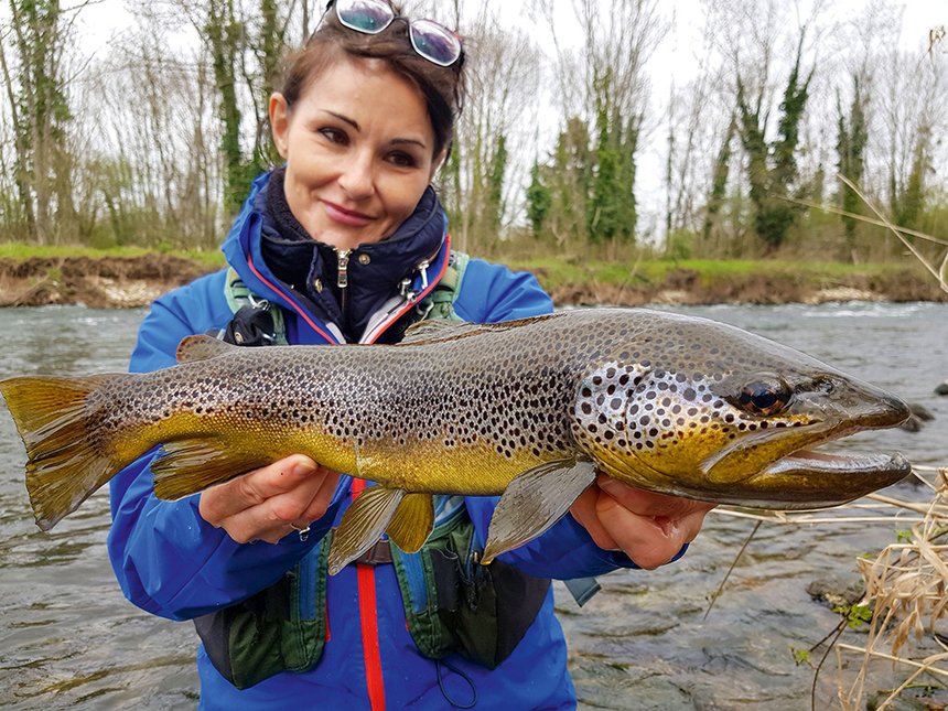 Contrairement aux idées reçues, et là encore au même titre que dans la pêche des carnassiers, l’eau froide est loin de constituer un frein à l’efficacité des appâts artificiels. En effet, le métabolisme des poissons étant ralenti, la sollicitation de la curiosité alimentaire chez les truites, au-delà du phénomène d’alimentation pur, permet de déclencher des touches qui ne seraient pas intervenues en présentant, par exemple, un appât naturel au toc. Les possibilités de présentations ralenties, très proches du fond, qui ne demandent pas aux poissons de courir après leur proie pour s’en saisir, offrent quant à elles un avantage réel sur les approches aux leurres traditionnelles, qui en fonction du niveau de stratifications des couches d’eau et des configurations des postes ne permettent que rarement autant d’insistance avec une grande précision. Pêcher la truite en nymphe aux mois de mars et avril est donc souvent gage de résultats d’une grande régularité. Dans ces eaux froides de début de saison, il est donc conseillé de chercher des veines ralenties dans lesquelles les truites ne sont pas soumises à une pression trop importante du courant. Les bordures molles, à côté des courants plus soutenus, sont régulièrement occupées.