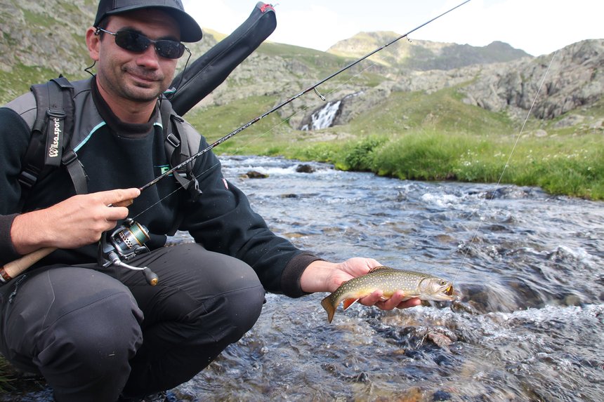 Avant le départ, il faut bien se renseigner sur les conditions météorologiques ainsi que sur l’itinéraire, et prévoir un sac de montagne optimisé, car le temps change vite en montagne. Je ne peux aussi que vous conseiller d’investir dans d’excellentes chaussures de randonnée (Meindl, la Sportiva, Millet) ou éventuellement de trail (Salomon, Hoka), car être bien chaussé est un point clé pour se faire plaisir lors de l’ascension et durant la partie de pêche autour du lac. Enfin, n’oubliez pas que les ruisseaux de plateaux d’altitude (souvent d’ailleurs en lien avec les lacs) peuvent être, en tant que tels, de superbes destinations de randonnées. Les farios ensauvagées ou les ombles de fontaine qui les peuplent mordent bien souvent toute la journée et leur pêche est très ludique. Davantage que pour les lacs, où il faut parfois prévoir plusieurs options techniques, le matériel pourra, là, être minimaliste avec une canne ultralégère et une boîte de teignes ou quelques leurres, ce qui s’accorde bien avec l’esprit grimpeur.