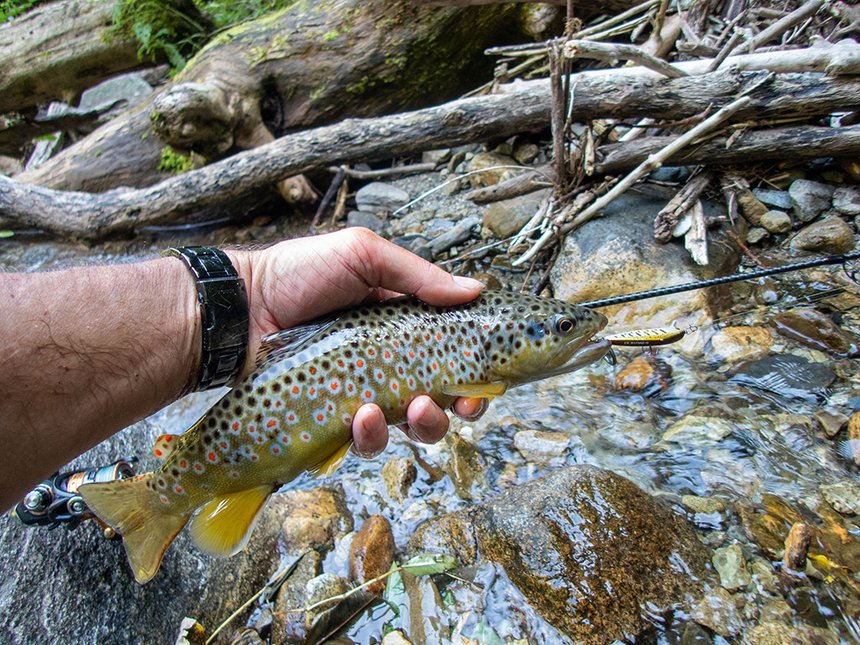 Si ce type de parcours n’existe pas chez vous ou si, comme moi, vous préférez nettement les truites nées dans la rivière, alors il faut vous pencher sur le second paramètre : la fréquentation. Plus la pression de pêche est forte, plus les truites sauvages, davantage remises à l’eau qu’auparavant, s’éduquent inéluctablement, surtout aux leurres durs, pratique la plus intrusive. La bonne stratégie consiste alors à aller chercher les farios sauvages là où elles sont les moins sollicitées, hors des sentiers battus.