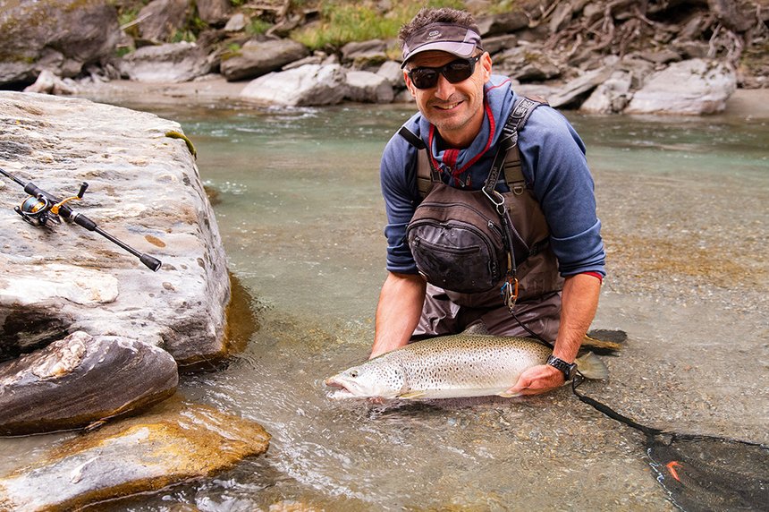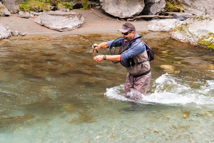 La chance peut être une donnée importante à la pêche. Aujourd’hui, elle est visiblement avec notre champion. La truite vient en effet de basculer du bon côté, vers l’aval, une zone dépourvue d’obstacles.